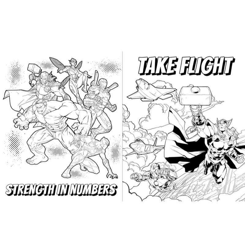 Med 24 sidor fyllda med roliga färgläggningar kan du följa med Odens son och Avengers när de skyddar jorden från en rad hotande superhjältar och skurkar!