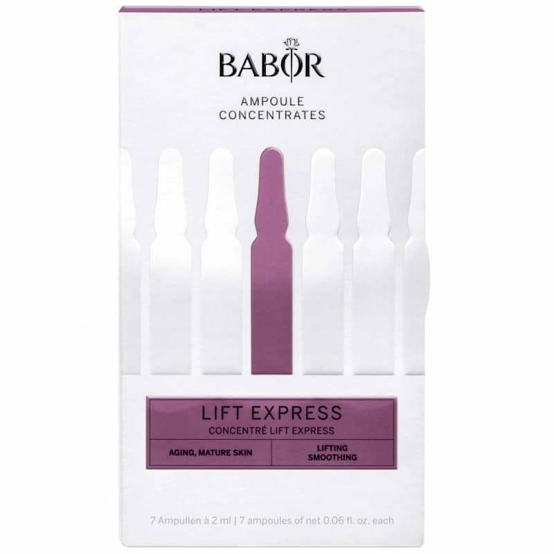BABOR Ampoule Concentrates Lift Express Ampullit ovat eksklusiivista ihonhoitoa sen tiivistetyimmässä muodossa – BABORin ihonhoito-rutiinien sydän kotona ja hoidoissa. Yksittäiset annokset, joissa on pienimolekyylisiä ainesosia, pakattuna 2 ml steriileihin lasiampulleihin. Hygieeniset ja hyvin säilytetyt ainesosat tarjoavat aktiivista ihonhoitoa, joka menee syvemmälle kuin seerumi.