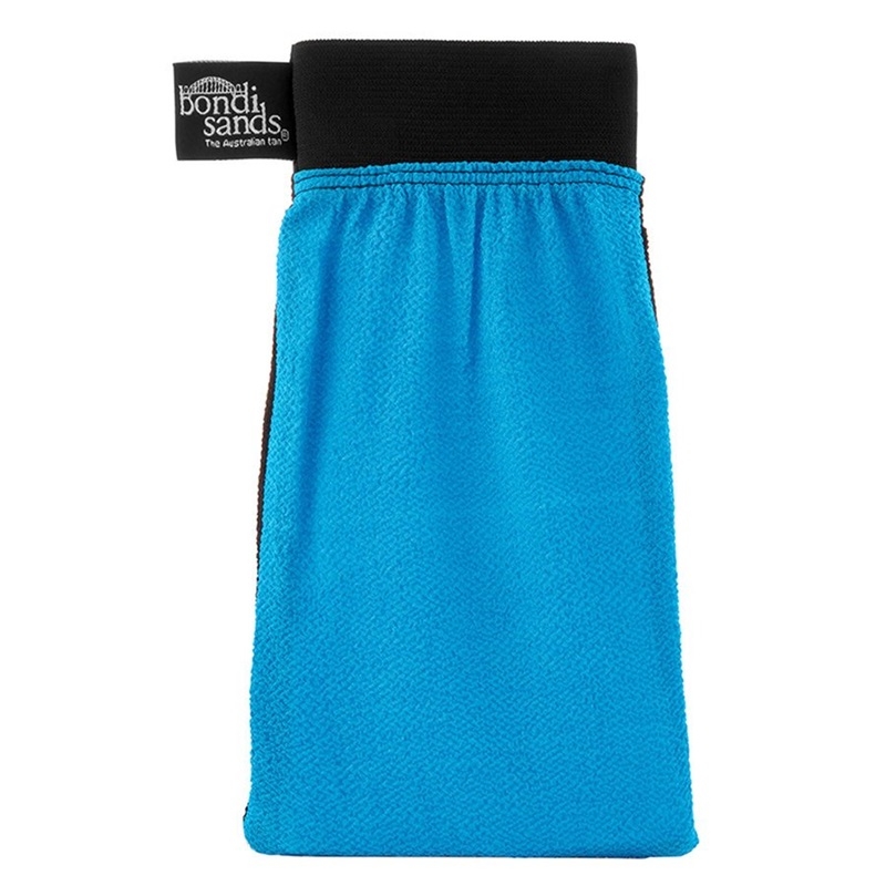 Bondi Sands Exfoliating Mitt on uudelleenkäytettävä kuorintahanska, joka valmistaa ihon tasaiseen ja virheettömään itseruskettavan levitykseen. Musta puoli valmistaa ihon kuorimalla ja poistamalla kuolleita ihosoluja sekä jäämiä edellisestä itseruskettavan levityksestä. Sininen puoli poistaa ei-toivotut levitysvirheet, kuten raidat.