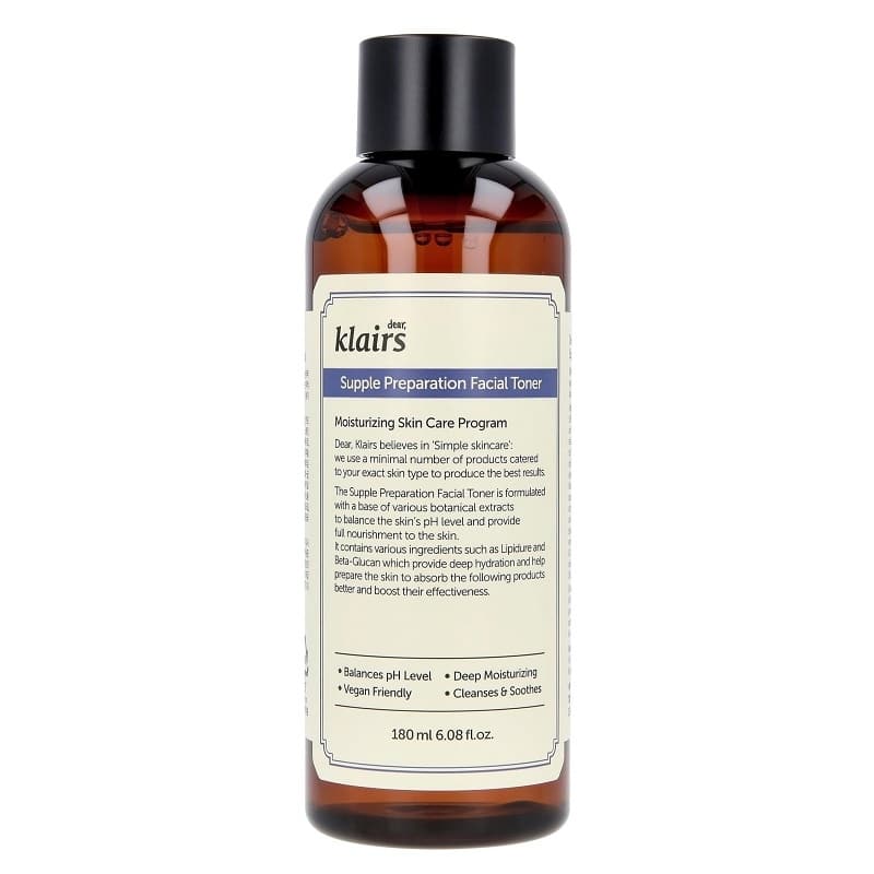 Supple Preparation Facial Toner poistaa epäpuhtaudet ja talin samalla kun palauttaa ihon pH-tasapainon puhdistuksen jälkeen. Aminohapot ja hyaluronihappo vähentävät ärsytystä ja kosteuttavat syvästi. Se valmistelee ihoa myöhempää hoitoa varten ja auttaa ihoa imemään myöhempiä ravintoaineita. Sopii normaalille, kuivalle ja herkälle iholle.