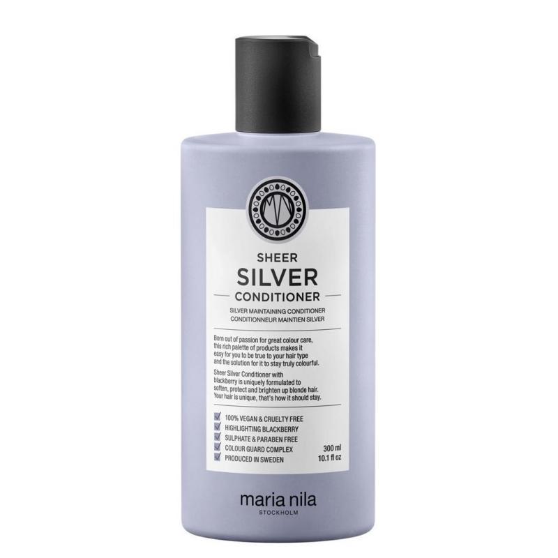 Tutkiva hoitoaine luonnollisille ja värjätyille vaaleille, valkoisille ja harmaille hiuksille, joka pehmentää, kosteuttaa ja vahvistaa hiusten rakennetta. Violetit pigmentit ja karhunvatukkauutteet neutraloivat kultaisia sävyjä ja lisäävät kiiltoa, joka korostaa ja elävöittää hiusväriäsi. Sheer Silver Conditioner -hoitoaineessa on hedelmäinen ja kukkainen tuoksu, jossa on vivahteita jasmiinista, appelsiinista ja greippistä. Värinsuojaus Color Guard Complex suojaa hiuksiasi UV-säteilyltä ja vapailta radikaaleilta.