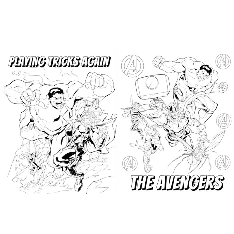 24 sivua täynnä hauskoja värityskuvia, ja voit liittyä Odinin pojan ja Avengersin seuraan, kun he suojelevat maata monia uhkaavia supersankareita ja roistoja vastaan!
