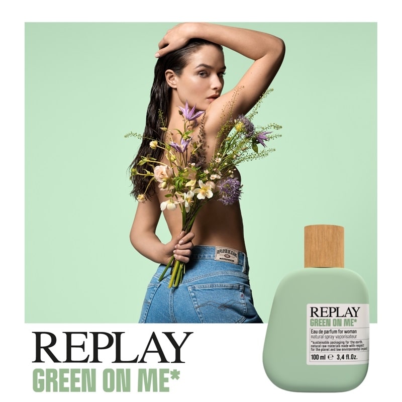 Replay Green On Me Woman EdP herättää kasvihuoneen tunnelman varhaisena aamuna. Auringonsäteet alkavat siivilöityä ikkunoiden läpi, jotka ovat yhä huuruisia iltapäivän lämmöstä. Kukat, yhä kasteen kostuttamat, alkavat avautua ja paljastavat varovasti kirkkaat värinsä samalla, kun ne vapauttavat luonnon viettelevän tuoksun.