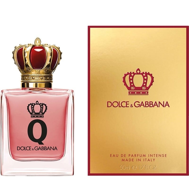 Den nye duftens flaske speiler originalen, Q by Dolce & Gabbana; korken avbilder en kongelig krone i rødt og gull, og glasset har en modig kirsebærrød farge.