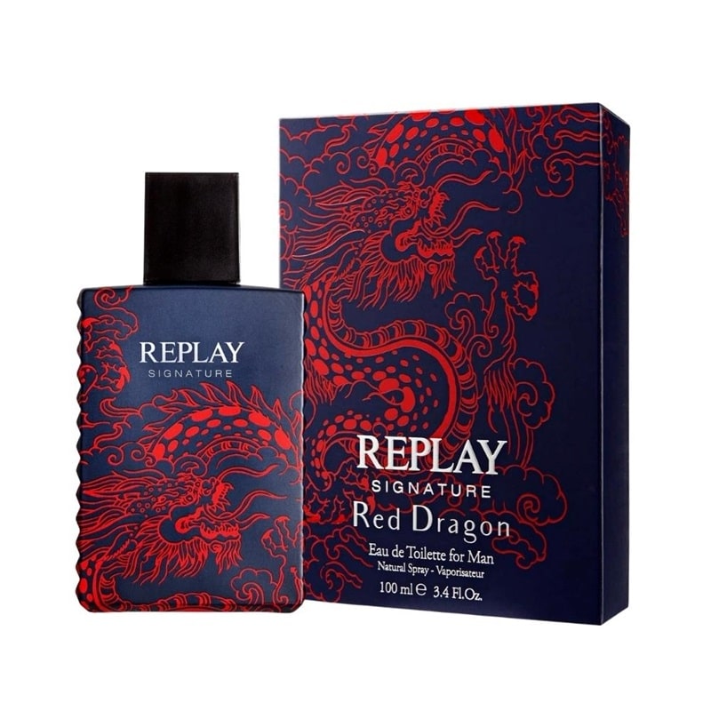 Replay Signature Red Dragon for Man, en storslått rød drage pryder flasken og formidler styrke og mystikk. Med denne parfymen avslører menn sine gåtefulle sjeler med besluttsomhet, mot og energi. Duften åpner med rosépepper og kardemomme i et krydret, sprudlende spill som går over i et uventet hjerte av te og geranium, og overrasker oss med en base av hvite tresorter og vetiver. En tidløs og evig elegant duft for en modig og sofistikert mann.