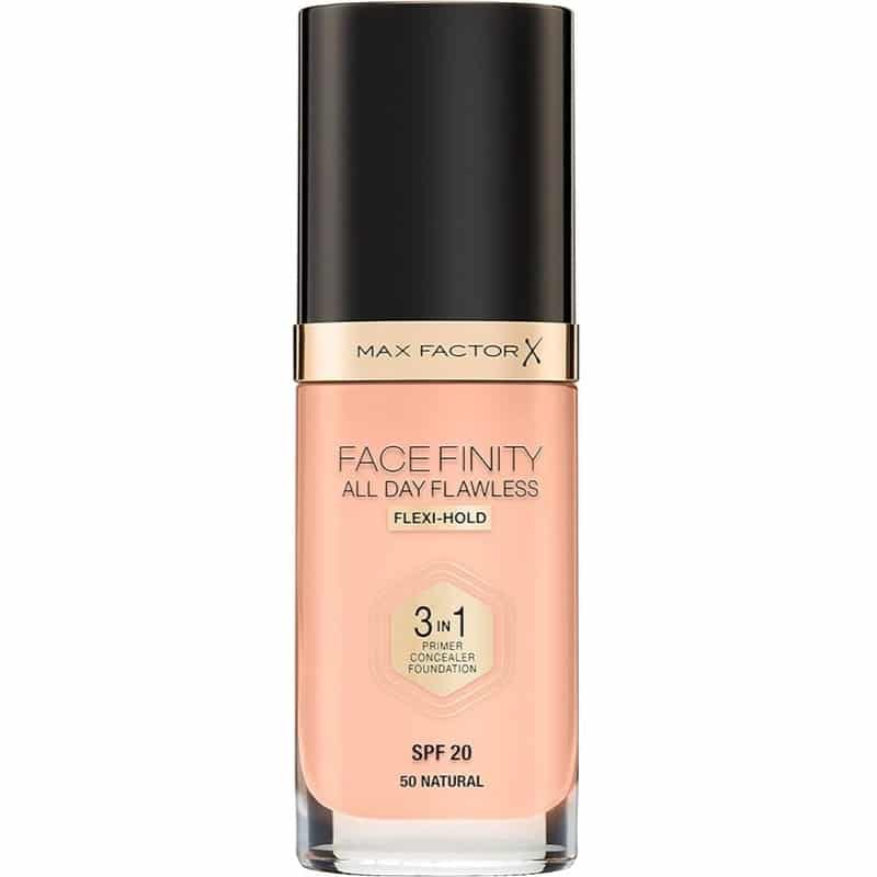 Primerfunksjonen er basert på; en patentert Flexihold-teknologi som gjør huden elastisk og gir en lett eksfolierende effekt slik at bronzer, blush eller highlighter vil gi en jevn og glatt finish. Max Factor Facefinity 3 In 1 Foundation tryller bort mørke ringer og gir en naturlig matt finish samtidig som den gir lett SPF 20-beskyttelse.