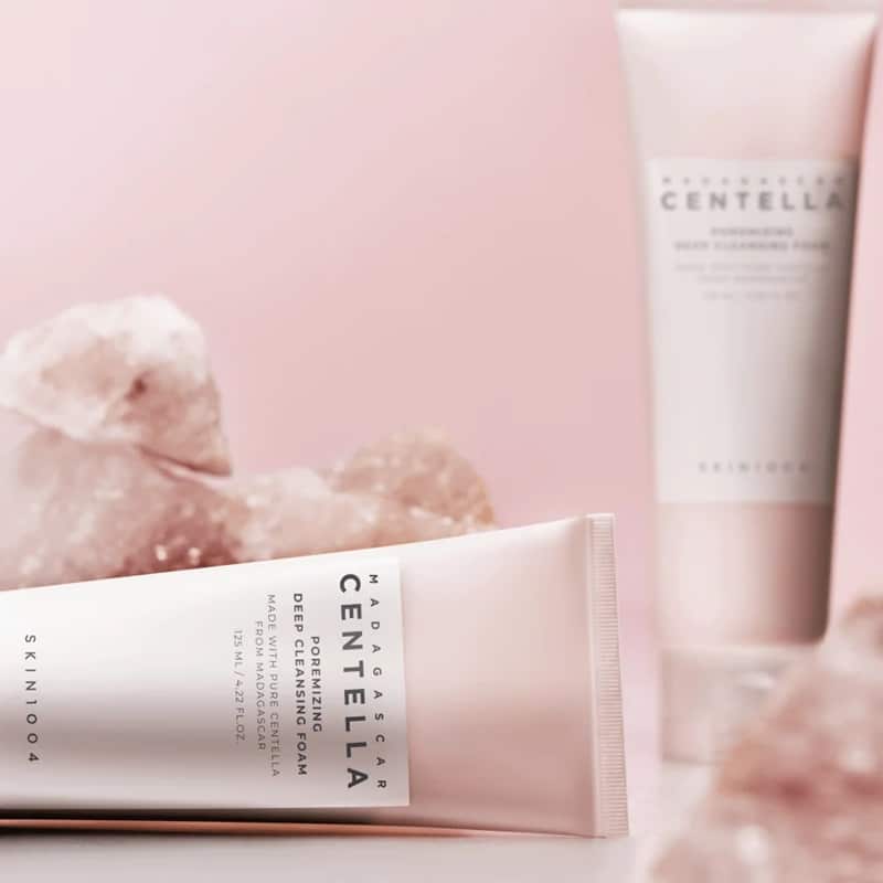 SKIN1004 Madagascar Centella Poremizing Deep Cleansing Foam er en alt-i-ett ansiktsrens med rosa Himalayasalt. Den vasker grundig bort solkremrester, døde hudceller og overflødig talg. Rosa Himalayasalt og renset kaolin renser porene i dybden. Den klebrige, kremete pastaen forvandles til et rikt skum på huden. Over 80 forskjellige mineraler fra Himalayasaltet skaper osmotisk trykk som effektivt fjerner urenheter fra porene. Inneholder beroligende Centella Asiatica-ekstrakt (cica) fra Madagaskar, SKIN1004s unike signaturingrediens. Papain (et proteinnedbrytende enzym fra papaya) og eddik hjelper med å fjerne døde hudceller, og etterlater huden glatt og silkeaktig. Kremen er testet for å passe alle hudtyper, inkludert sensitiv og lett irritert hud.